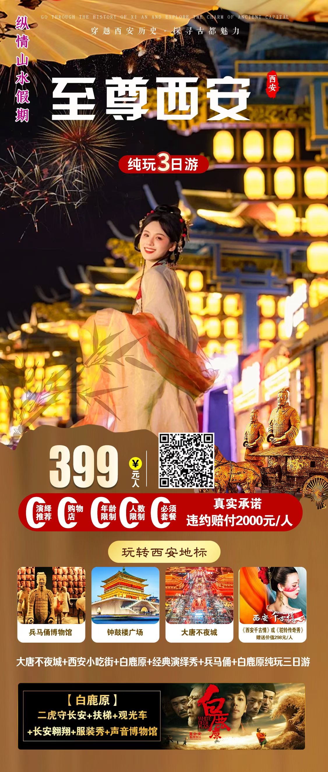 陜西--【至尊西安】高品質(zhì)純玩西安!特價399丨含白鹿原298套票丨含西安298元演出門票丨臻至體驗丨純玩三日游