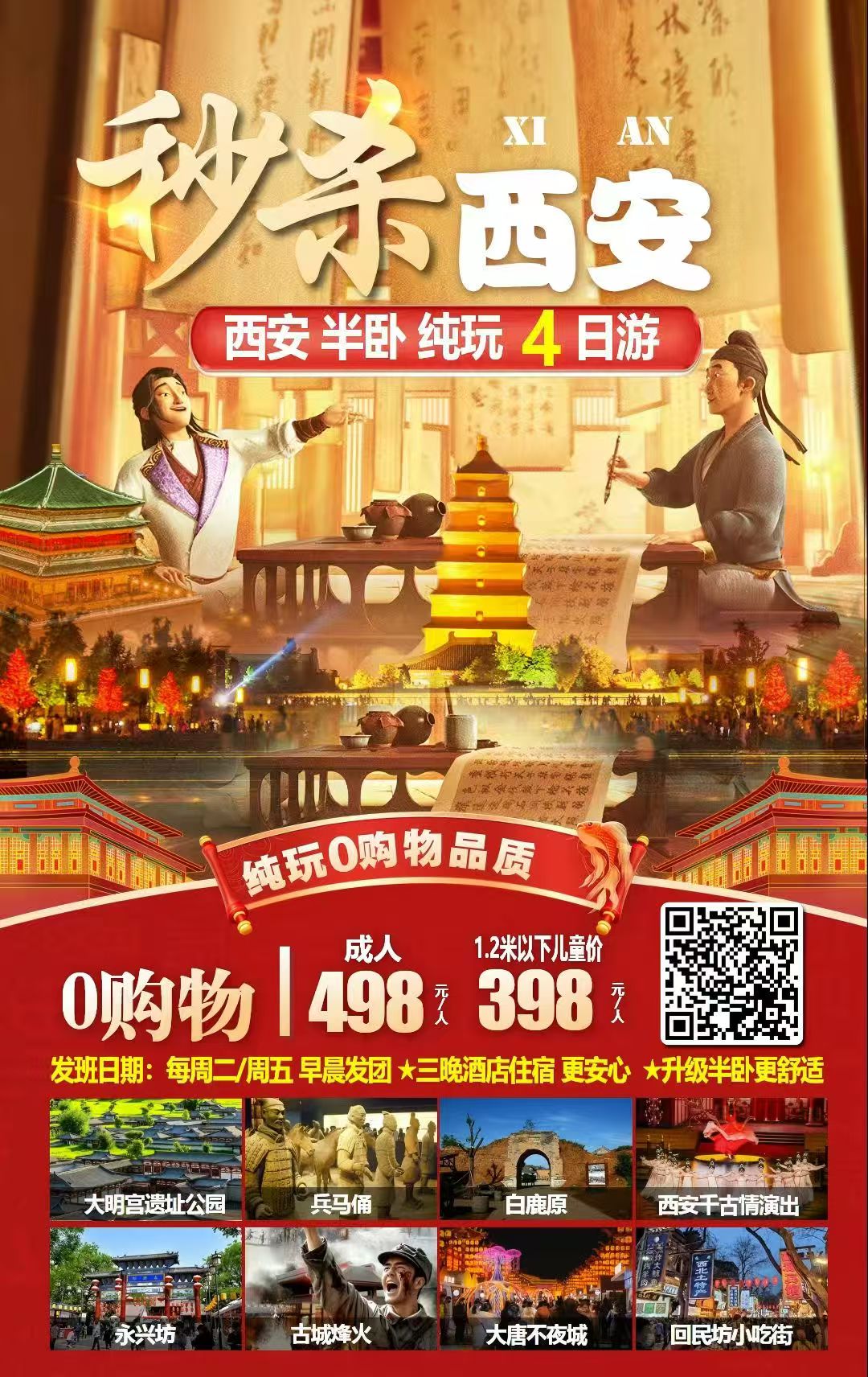 陜西--【秒殺西安】升級半臥.純玩四日游