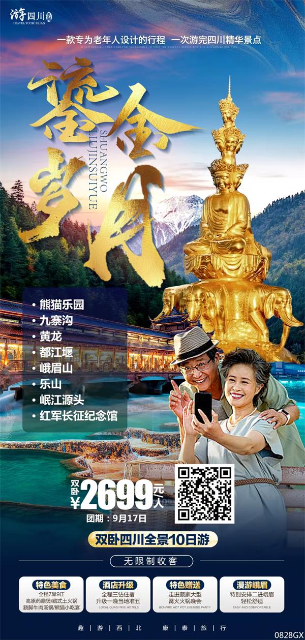 四川--【鎏金歲月】九寨黃龍熊貓樂園樂山峨眉全景雙臥10日游