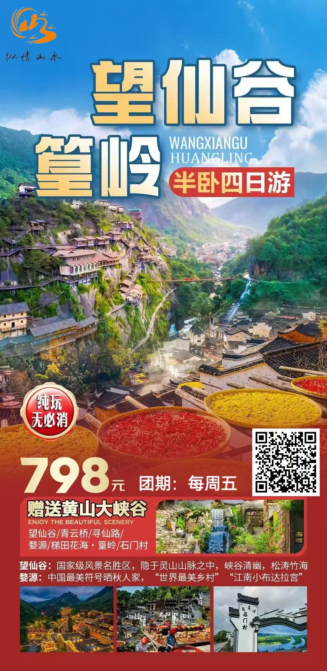 江西--【婺源曬秋、升級(jí)半臥】【望仙谷+篁嶺純玩4日游