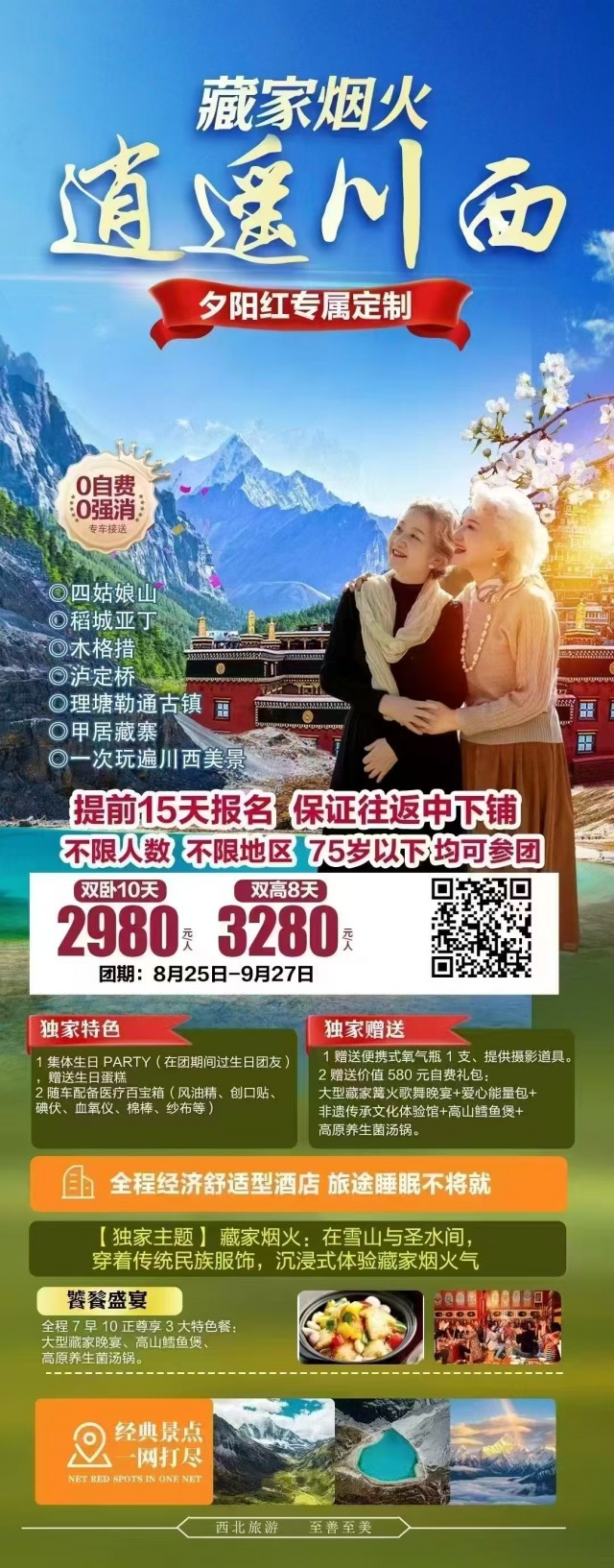 四川--【逍遙川西】四姑娘山稻城亞丁瀘定橋雙臥10日游/雙高8日游