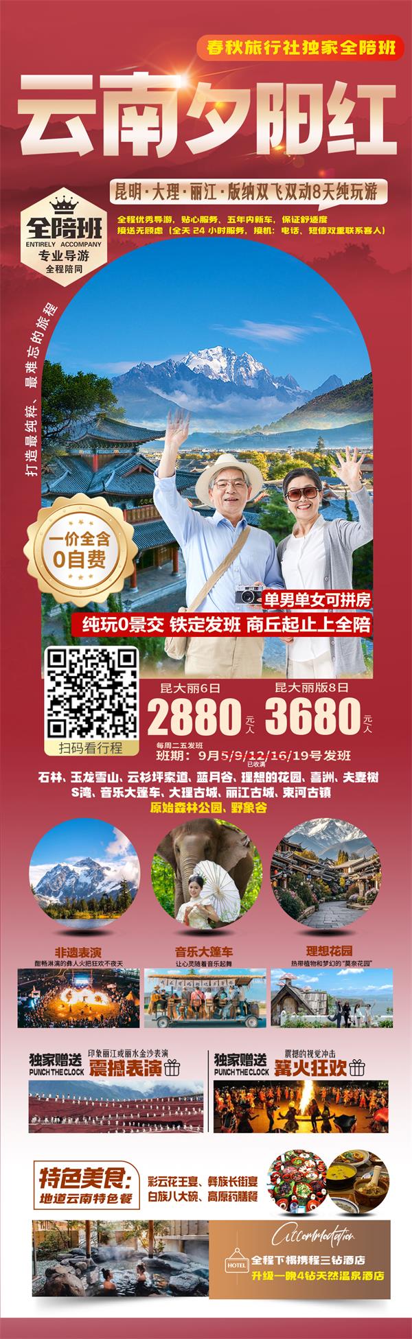 云南--【云南夕陽紅】昆明大理麗江雙飛六日/昆大麗版納8日游