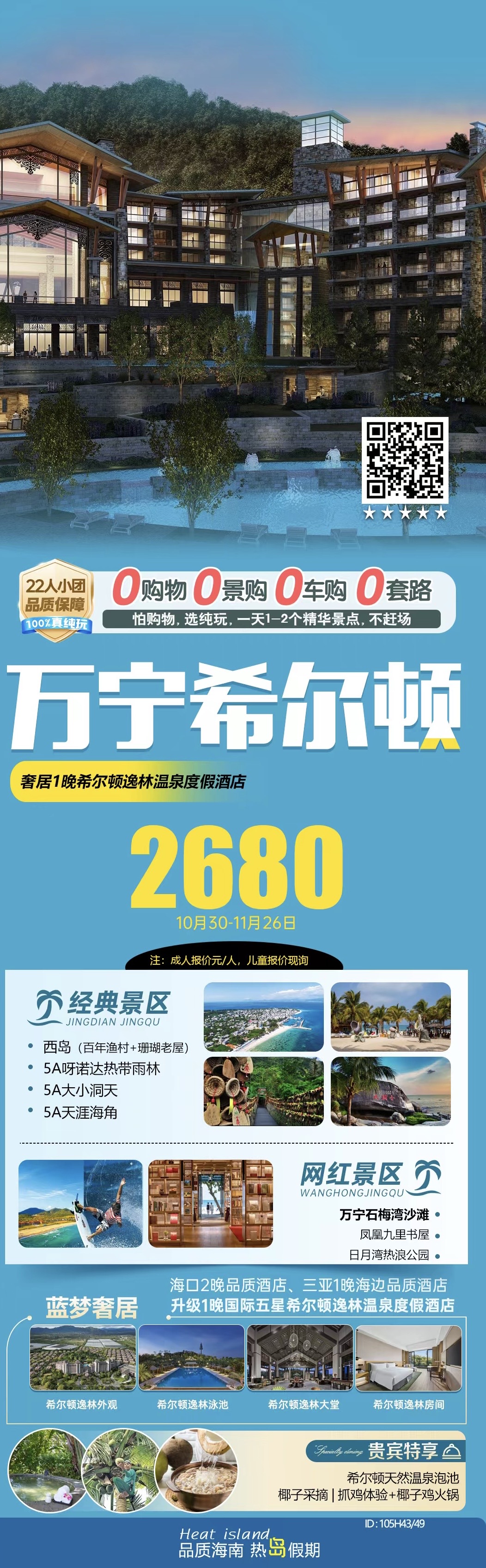 海南--【萬寧希爾頓】海南雙飛五日游